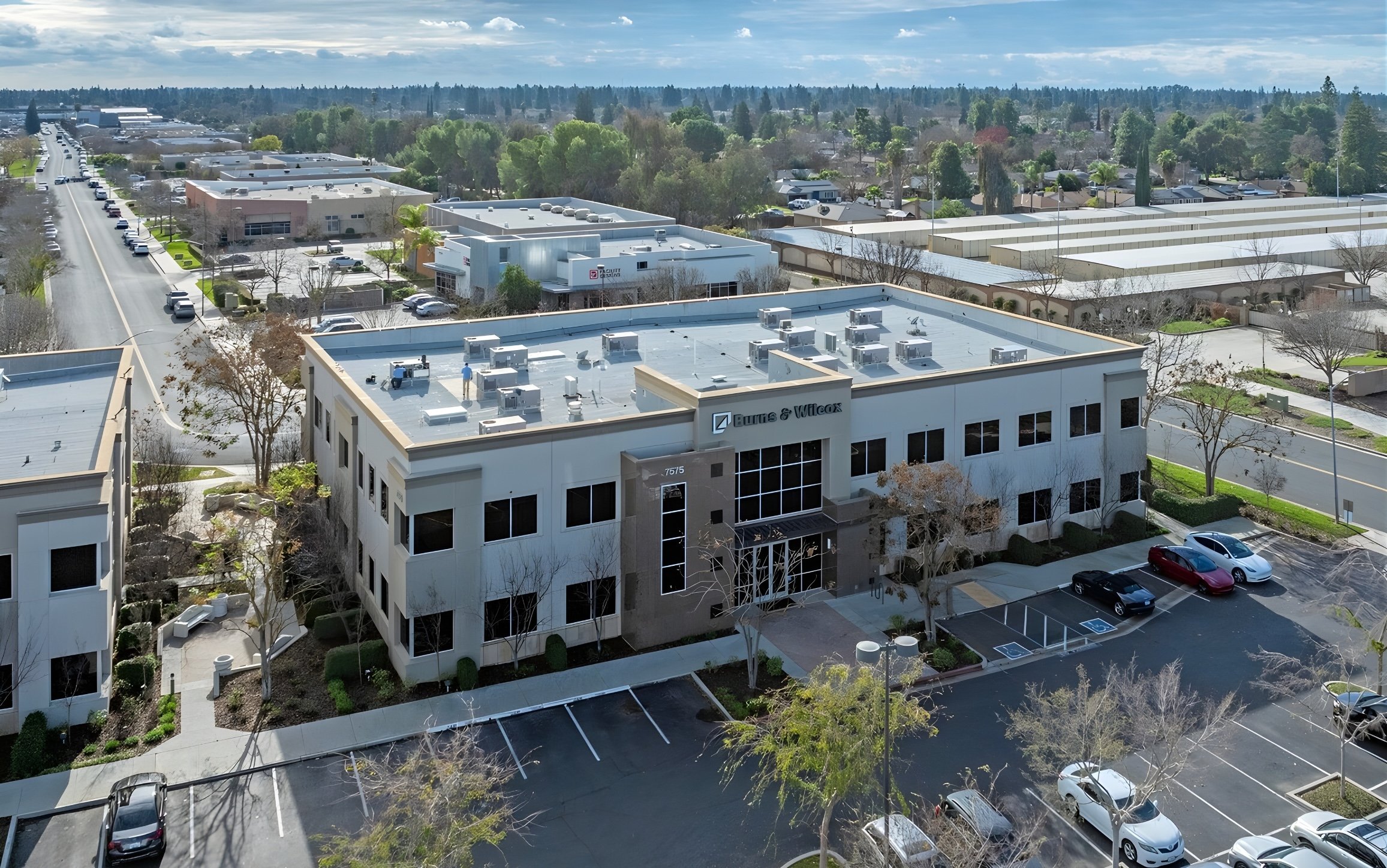 7575 N. Palm Ave. is a two-story Class A office building located within the Palm Bluffs Corporate Center, one of northwest Fresno's most established and professional business corridors. The building spans approximately ±22,000 SF of well-appointed office space with energy-efficient construction, high-speed connectivity, and quality interior finishes throughout, including full-height doors, vertical blinds, and Second Look ceiling tiles. Two suites are currently available, offering an excellent opportunity to join a premier space. Tenants benefit from secure after-hours card key access, ample on-site parking, and monument signage available to qualified tenants.
