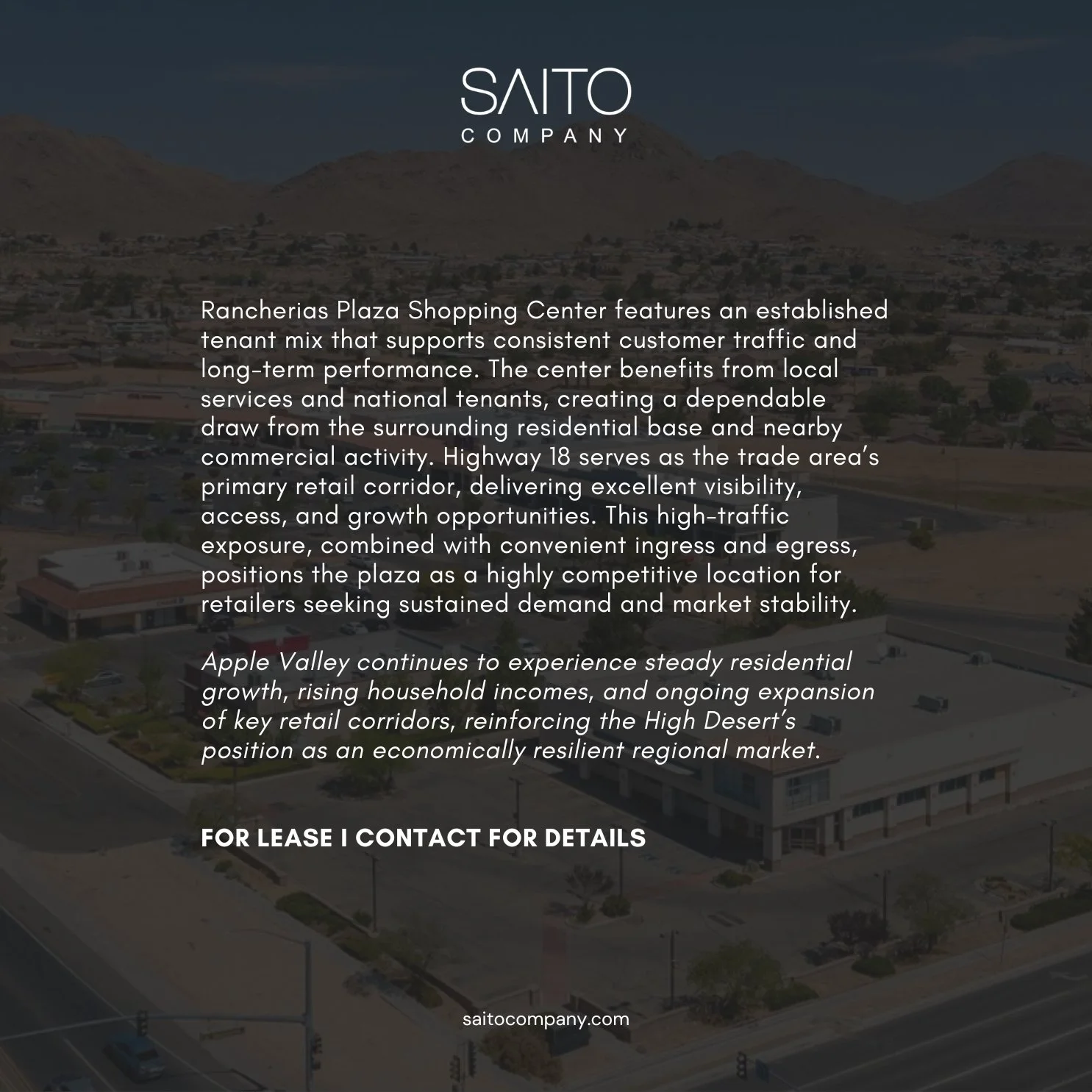 Represented by: PATRICK MONREALPresident, Executive Sales and Leasing Agentpatrick@saitocompany.com559 284 9028LIC. 02007579Location, demographics, and plan information is supplied by sources believed to be reliable. However, the Mark Saito Company cannot guarantee its accuracy and make no warranty or representations as to its veracity. It is presented here with the possibility of errors, omissions, change of price, rental or other conditions, prior sale, lease or financing, or withdrawal without notice. We include projections, opinions, assumptions or estimates for example only and these may not represent current or future performance of the property. All inquiries about content should be directed to the broker (BRE LIC# 00701227) Mark Saito and The Saito Company. All rights reserved.